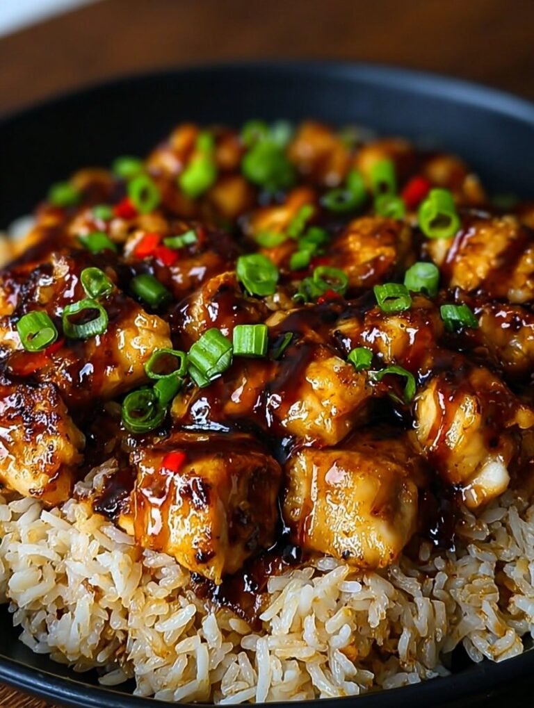 Verteilen Sie den lockeren Reis auf Tellern. Geben Sie großzügig das glasierte BBQ-Hähnchen über den Reis. Sie können das Gericht mit frischen Frühlingszwiebelringen oder etwas gehackter Petersilie garnieren, um eine frische Note hinzuzufügen. Dieses Gericht ist so simpel, aber der Geschmack ist so tief und befriedigend, dass es garantiert zum Liebling der ganzen Familie wird. Es zeigt, dass die besten Rezepte oft aus einem kleinen Küchenchaos entstehen.