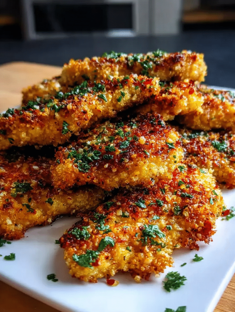 Ein wichtiger Tipp betrifft die Vorbereitung des Fleisches: Kaltes Hähnchen verträgt sich nicht gut mit heißem Backen. Nehmen Sie die Filets etwa 15 bis 20 Minuten vor dem Panieren aus dem Kühlschrank, damit sie Zimmertemperatur annehmen und gleichmäßiger garen. Ebenso wichtig ist es, die Filets auf dem Blech nicht zu überfüllen. Wenn die Stücke zu dicht beieinander liegen, dämpfen sie sich gegenseitig, anstatt zu rösten. Achten Sie auf genügend Abstand zwischen jedem Stück, damit die heiße Luft zirkulieren kann und jedes Hähnchenteil perfekt goldbraun wird. Und denken Sie daran: Qualität zählt. Verwenden Sie frischen, hochwertigen Parmesan – er macht den Unterschied zwischen gut und absolut sensationell in der Kruste, sowohl geschmacklich als auch in der Textur.