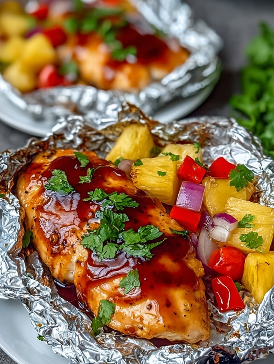 Hawaiianische BBQ-Hähnchen-Ananas-Folienpäckchen