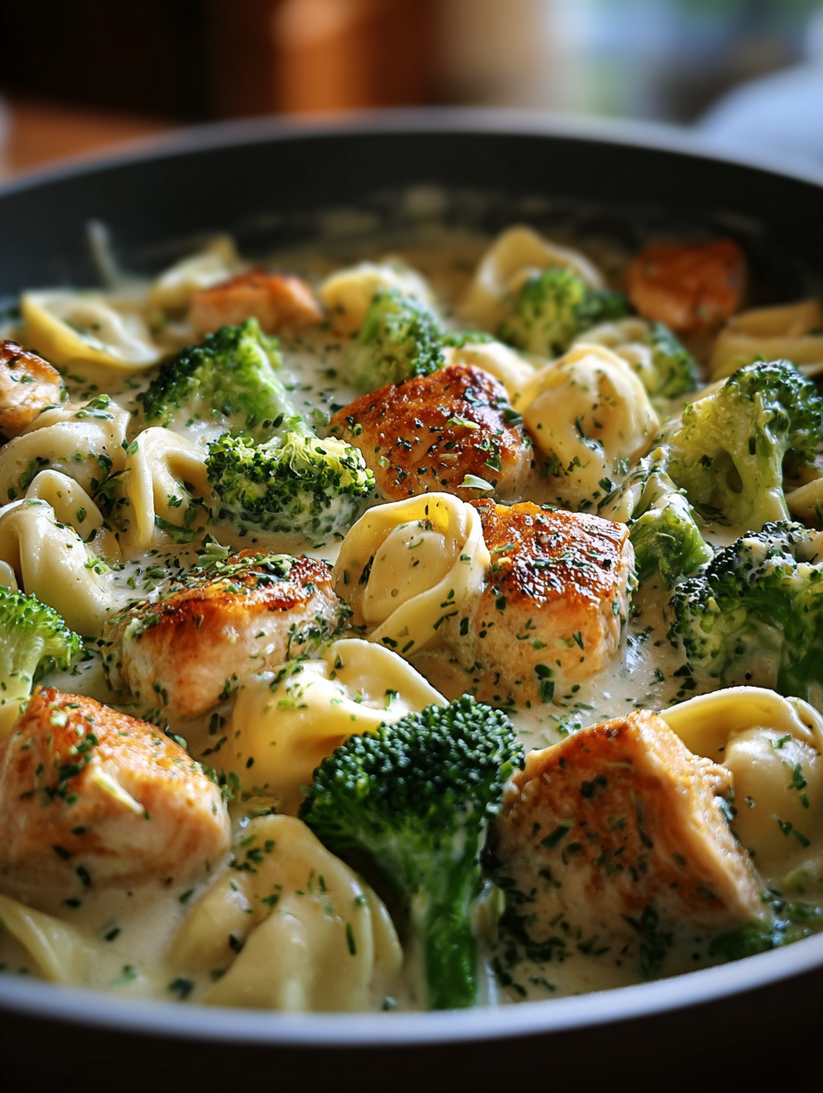Einfaches Rezept für cremige Tortellini mit Hähnchen und Brokkoli