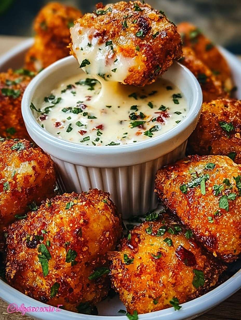 Käse-Jalapeño-Ranch-Hähnchen-Poppers mit cremigem Dip