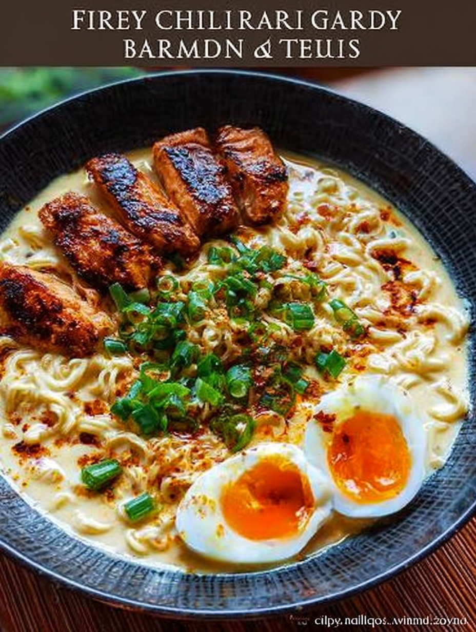 Scharfe Hühner-Ramen mit cremiger Knoblauchsauce