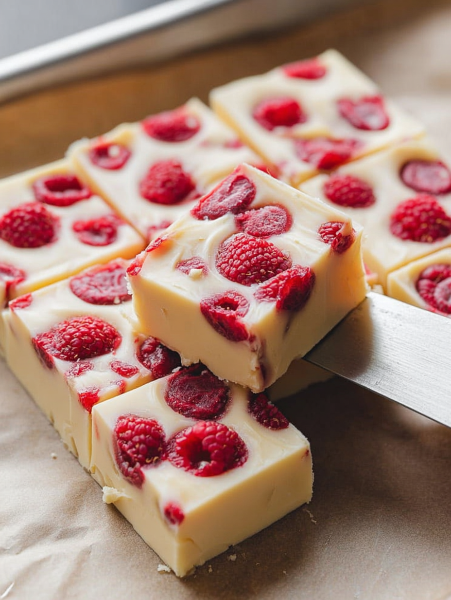 Weiße Schokoladen-Himbeer-Fudge