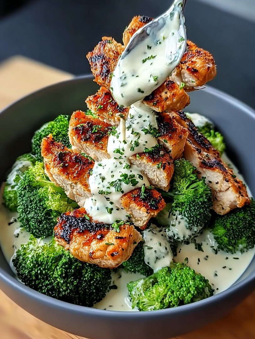 Cremige Knoblauchsoße trifft auf Hähnchen & Brokkoli