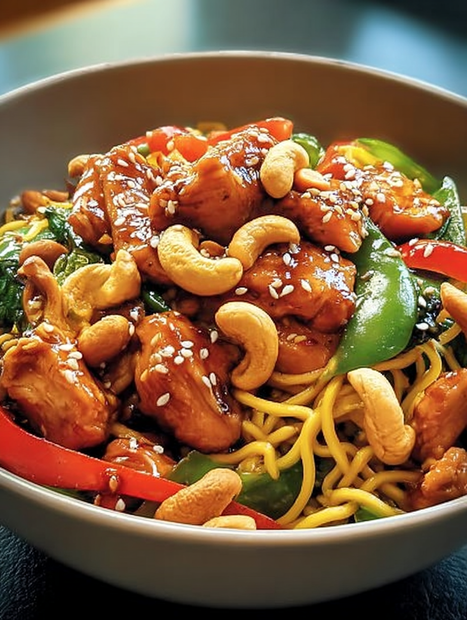 Teriyaki-Hähnchen & Cashew-Wok mit Nudeln