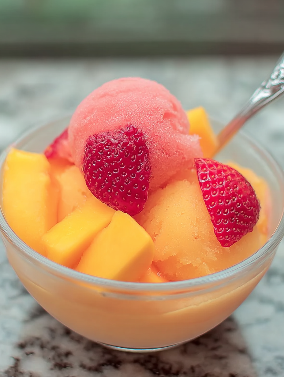 Rezept für erfrischendes Mango-Erdbeer-Sorbet