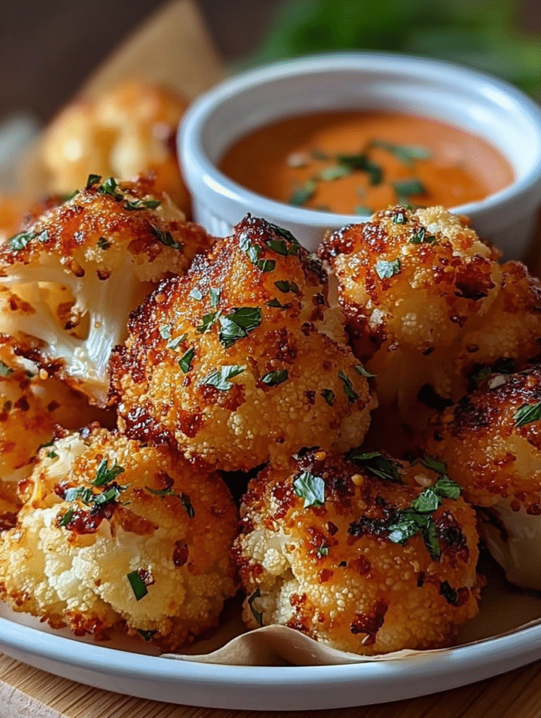 - Step 5: Den gebackenen Blumenkohl aus dem Ofen nehmen und auf einer Servierplatte anrichten. Vor dem Servieren optional mit frisch gehackter Petersilie bestreuen.