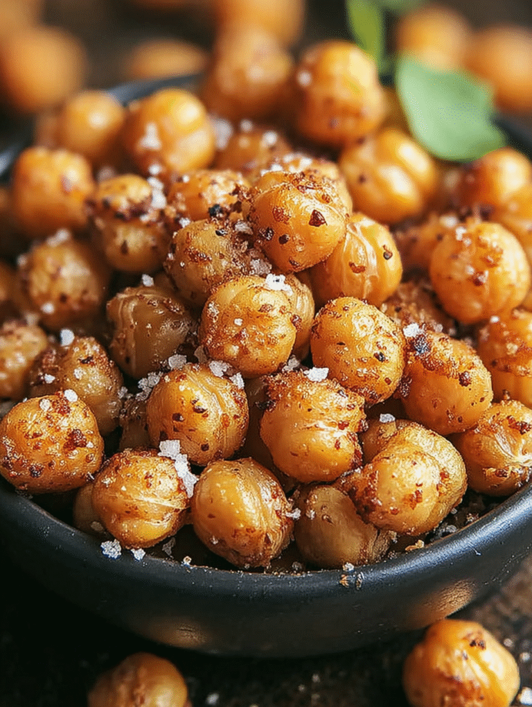 • Goldbraune, perfekt geröstete Kichererbsen, deren knusprige Textur man förmlich durch den Bildschirm spüren kann, sobald sie fertig sind.