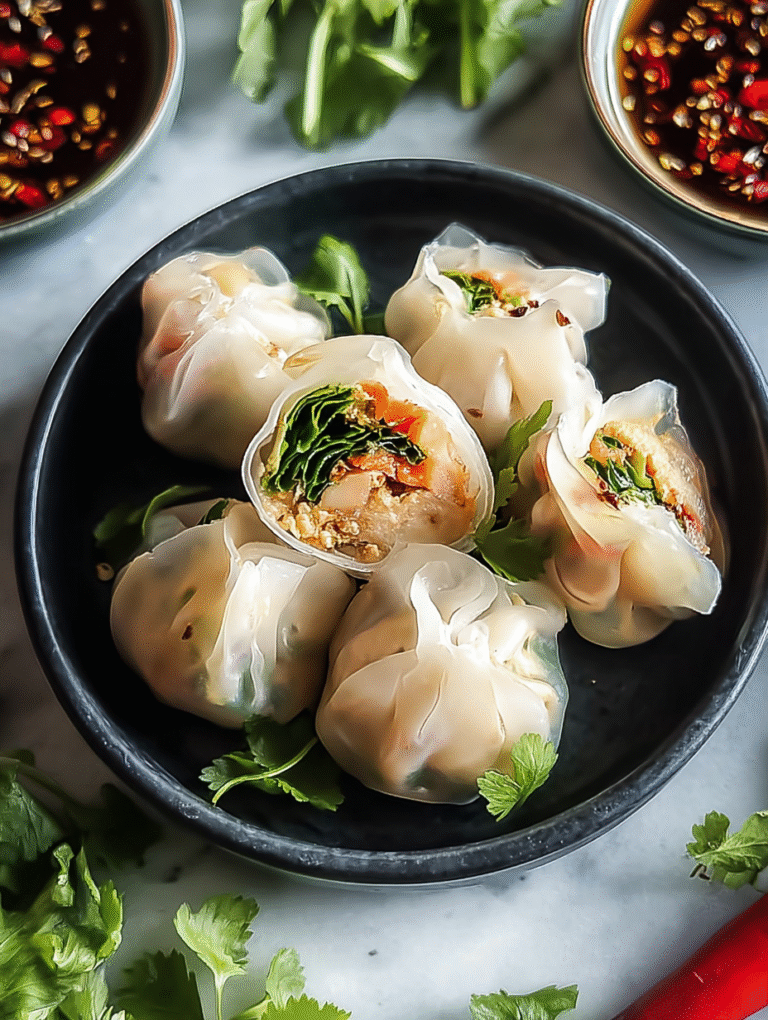 • Frische Frühlingszwiebeln und KorianderFein geschnitten, diese Kräuter sind essenziell für das frische, aromatische Profil der Füllung.