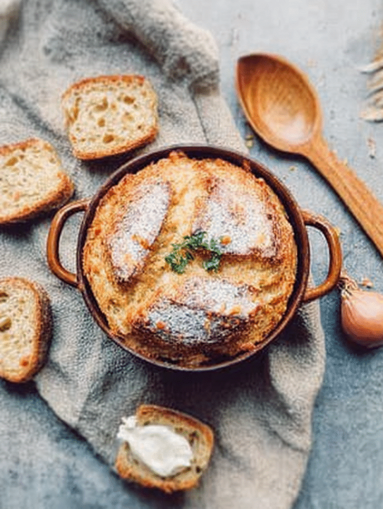 Dieses Rezept ist meine persönliche Rettungsinsel. Es ist das Ergebnis eines Küchenunfalls, bei dem ich versucht habe, ein Baguette zu retten, das ich fälschlicherweise für ein Stein-Exponat hielt. Anstatt es als Waffe oder Türstopper zu verwenden, habe ich es in ein Bett aus würziger Hühnerbrühe, cremigem Ei und aromatischem Käse gebettet. Das Ergebnis? Ein Gericht, das die Seele wärmt und gleichzeitig die Textur eines perfekten Brotkuchens bietet – außen goldbraun und knusprig, innen feucht und geschmackvoll. Es ist das kulinarische Äquivalent eines warmen Kamins an einem kalten Tag.