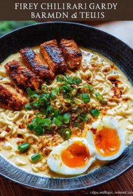 Scharfe Hühner-Ramen mit cremiger Knoblauchsauce