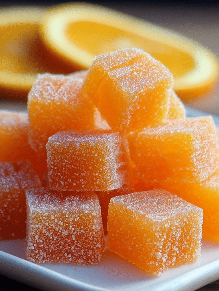 Diese leuchtenden Orangenbonbons sind unglaublich einfach. Nur drei Zutaten verwandeln Saft und Zucker in ein festes, intensives Fruchterlebnis.