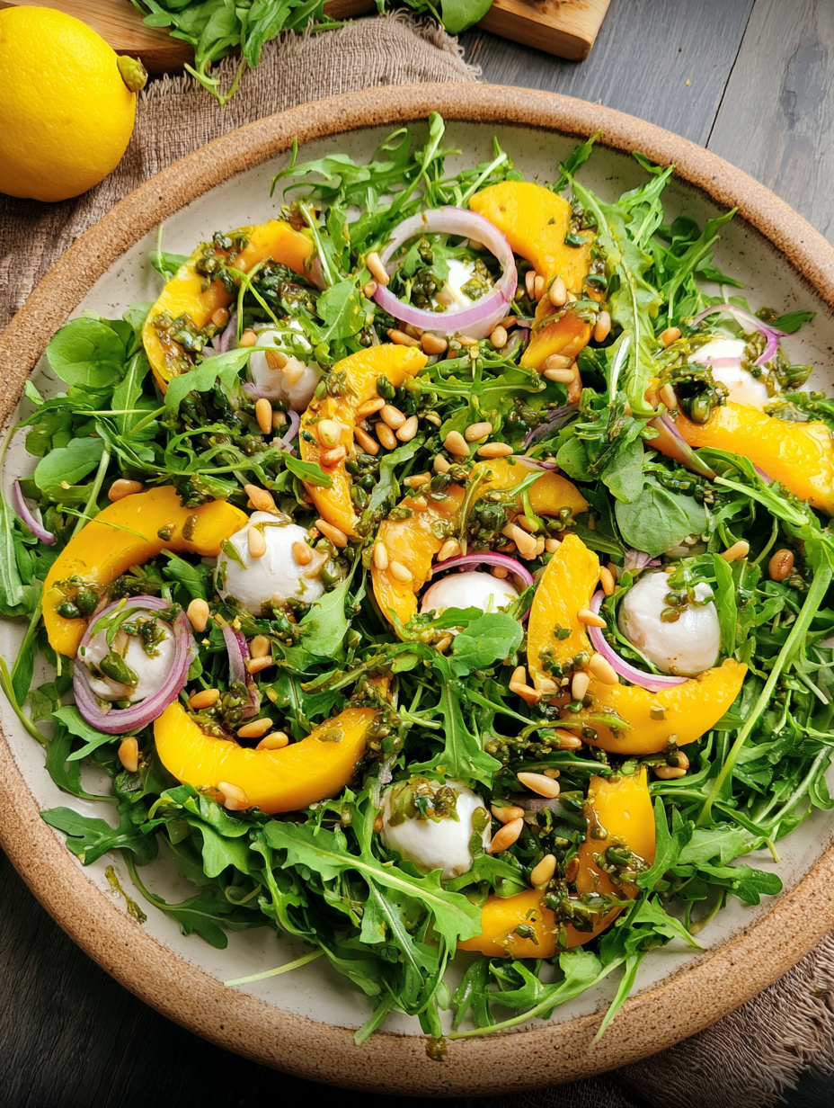 Doch der wahre Clou, der diesen Salat von „ganz nett“ zu „Himmel auf Erden“ katapultiert, sind die gerösteten Pinienkerne. Sie fügen das nötige, butterweiche Knistern hinzu, das jede Gabel zu einem Fest macht. Das Geheimnis liegt nicht nur in der Kombination der Zutaten, sondern auch im Dressing, das die Schärfe des Rucolas und die Süße der Mango in eine perfekte Balance bringt. Dieser Salat ist schnell zubereitet und liefert garantiert staunende Gesichter an Ihrem Esstisch, versprochen!