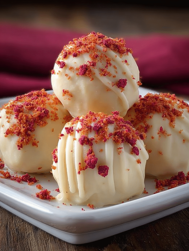 Ich suchte nach einem Dessert, das meine notorisch wählerische Tante beeindrucken sollte. Eigentlich wollte ich nur Himbeermarmelade einkochen, doch dann landete die geschmolzene weiße Schokolade unabsichtlich im Püree. Das Ergebnis? Diese cremigen, himmlischenWeiße Schokoladen-Himnon-alcoholic non-alcoholic vegetable stock-Trüffel, die jeden begeistert haben.