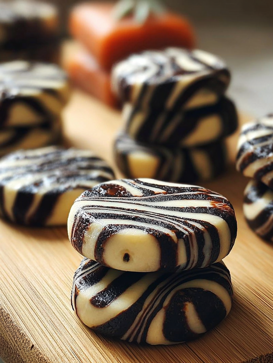 Diese gestreiften Schönheiten sind der beste Beweis dafür, dass Backen nicht perfekt sein muss, um perfekt zu schmecken und auszusehen. Sie sind ein Projekt, das sowohl optisch beeindruckt als auch kulinarisch vollends überzeugt. Nehmen Sie sich Zeit für die Kühlphasen – das ist wirklich der wichtigste Schritt, um diese hypnotischen Streifen zu erhalten. Wenn Sie das nächste Mal Lust auf ein Gebäck haben, das Ihre Gäste staunen lässt, denken Sie an diese schwarz-weißen Wunder. Und denken Sie daran: Falls das Muster doch mal etwas chaotischer wird – nennen Sie es einfach “abstrakte Marmorkekse” und genießen Sie jeden Krümel trotzdem!